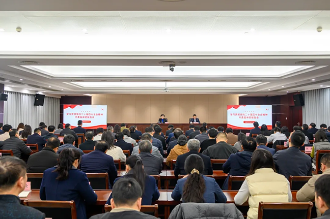 按照市委統(tǒng)一部署,12月24日,學(xué)習(xí)貫徹黨的二十屆四中全會(huì)精神市委宣講團(tuán)報(bào)告會(huì)在集團(tuán)舉行。市委宣講團(tuán)成員,市民政局黨委書記、局長連倩作宣講報(bào)告。集團(tuán)黨委書記、董事長張國勝主持。