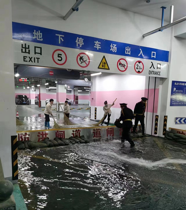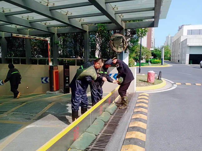 演練模擬持續(xù)暴雨導致地下車庫出現(xiàn)水情告急的情況。接到險情后,防汛應(yīng)急小組立即啟動應(yīng)急預案,及時疏散地下車庫內(nèi)的車輛,搬運、安裝防洪擋板,有序壘砌防洪沙袋,并使用防水電源線啟動潛水泵進行排水,及時清理積水區(qū)域。在搶險人員的共同努力下,險情迅速得到了控制,大家分工明確、配合默契,工作流程規(guī)范,安全保障措施到位,進一步檢驗了防汛搶險預案的實用性和可操作性,鍛煉了防汛搶險隊伍的組織能力、快速反應(yīng)能力,提高了實戰(zhàn)水平。