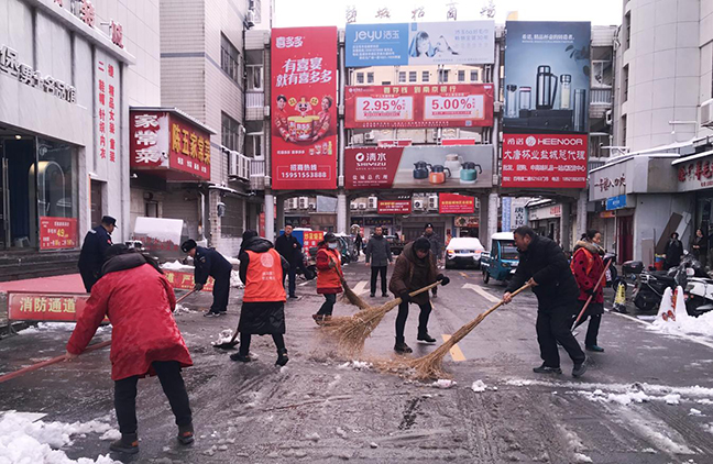 鹽城招商場“聞雪而動”,組織市場管理人員、保潔人員、商戶志愿者到周邊道路、停車場、居民樓坡道開展義務掃雪活動,并做好宣傳發(fā)動工作,動員市場商戶積極參與到活動中來。大家干勁十足、團結協(xié)作、有序清理,市場周邊積雪情況得到了極大緩解,及時保障了消費者及來往行人的出行暢通。同時,公司還組織人員赴各號樓逐層檢查,排除冰棱墜落安全隱患,進一步保障人員出入安全。
