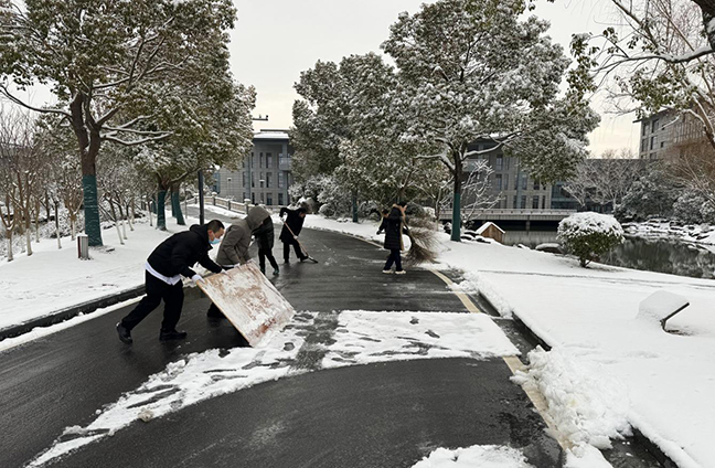 在凜冽的寒風中,鹽城迎賓館黨員干部職工自發(fā)組成“掃雪突擊隊”,大家躬著身子,迎“寒”而上,揮著鐵鍬,掃的掃、鏟的鏟,路面積雪和冰層很快被鏟起并集中堆放,為出行的車輛、人員開辟出一條方便安全的通道,用實際行動給寒冷的冬日增添了一份溫暖,也展現(xiàn)了酒店黨員干部職工樂于奉獻的精神風貌。