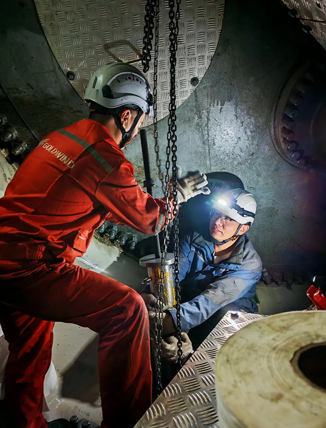 液壓變槳油缸是風機調向系統的核心部件,一旦失效輕則導致機組停機,重則在臺風來襲時容易引發(fā)嚴重設備事故。現場高空作業(yè)空間狹窄,疊加夜間低溫與陣風干擾,施工難度極大。維修團隊輪流作戰(zhàn)、緊密配合,憑借精湛技藝,高效完成油管對接與系統調試,全程嚴格把控參數,確保安裝精準可靠,從根源上杜絕安全隱患。