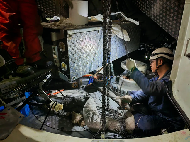 本次搶修工作任務繁雜,涵蓋油缸及輔助設備吊運、滑軌支架安裝、油缸拆卸更換、系統調試等多個關鍵工序,按常規(guī)流程需5天才能完成。面對臺風逼近的緊迫壓力,維修團隊以“保安全、搶工期”為核心,迅速優(yōu)化施工方案,科學調配人力物力,強化各工序銜接協作,成功將搶修周期大幅壓縮至26小時,在臺風來臨前順利完成全部搶修任務。